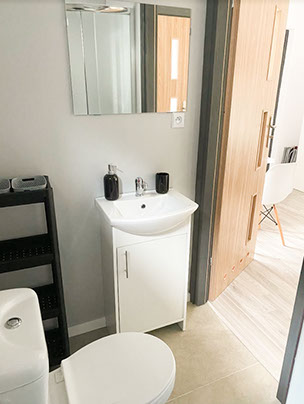 Dodatkowo każdy domek wyposażony jest w deski do prasowania, żelazko, suszarkę na pranie, suszarki do włosów, parawany, grilla oraz 4 krzesła turystyczne.
