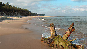 wędkarzy oraz osób lubiących windsurfing. Od Morza Bałtyckiego oddalona jest o 2,5 km, od Jeziora