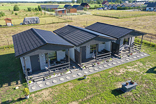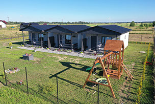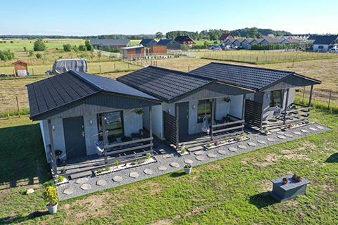 Domki znajdują się na ogrodzonej działce, na której każdy domek ma do dyspozycji bezpłatny parking.