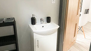 Aneksu kuchennego wyposażonego w płytę indukcyjną, czajnik elektryczny, lodówkę,